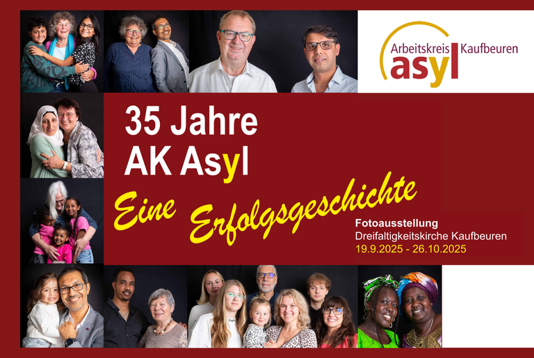 Der Arbeitskreis Asyl feiert sein 35-jähriges Bestehen mit einer besonderen Fotoausstellung in der Dreifaltigkeitskirche in Kaufbeuren. Unter dem Motto „35 Jahre AK Asyl – Eine Erfolgsgeschichte“ werden vom 19. September bis zum 26. Oktober 2025 eindrucksvolle Bilder und persönliche Zitate von Ehrenamtlichen sowie von den Menschen, die sie begleitet haben, gezeigt.